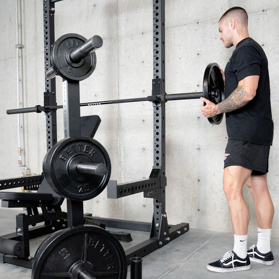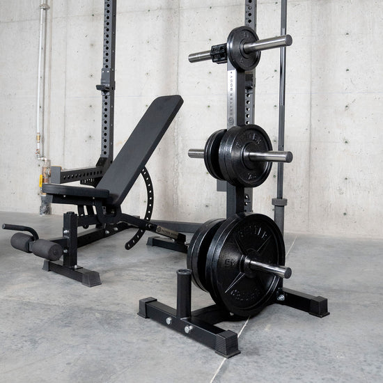 Weight Plates (Your Choice: Deep Dish or Bumper): Choose between Deep Dish Iron Plates for traditional strength training or Bumper Plates for modern durability and floor protection. Both are Olympic-sized (2-inch opening) and grooved for easy handling and stacking.