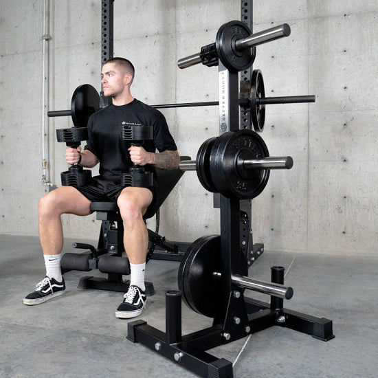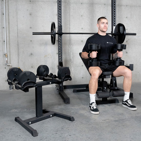 - Dumbbell Stand: A dedicated stand to keep your 90 lb adjustable dumbbells organized and accessible. Designed for easy reach and a clutter-free workout space, ensuring maximum efficiency in your home gym.