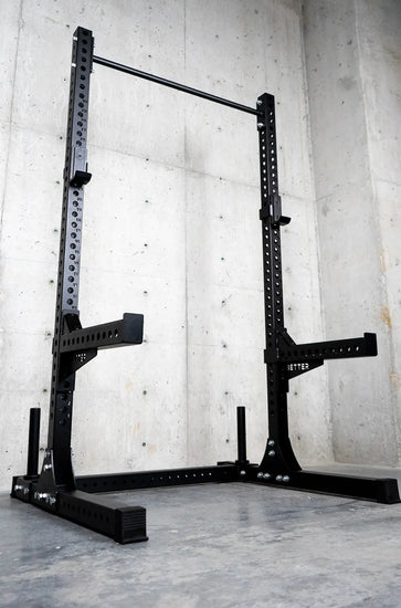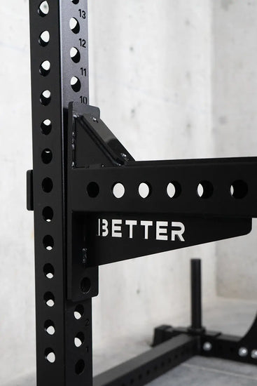 - Adjustable Squat Stand 2.0: Built from heavy-duty steel with a max load of 1,700 lbs, this rack is available in three height options—90", 80", and 70"—to fit your space and training needs. It includes integrated plate storage, a height-adjustable pull-up bar for customized grip positioning, adjustable spotter arms, and a skinny pull-up bar for added versatility in your workouts.
