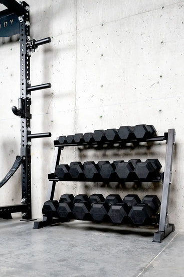 The Better Body Rubber Hex Dumbbell Set and Weight Rack is the ultimate solution for lifters at every level. Whether you’re starting your fitness journey or upgrading from beginner equipment, this set is built for durability, performance, and style. Crafted from all-natural, low-odor rubber, these dumbbells are durable and drop-friendly, designed to handle your toughest workouts without compromising performance. Push yourself to the limit, knowing your equipment can take the impact. And don’t worry about your floors—pair them with our Exercise Mat or Gym Floor Mat for added protection.