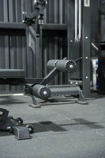 Transport wheels provide easy movement, making the bench easy to reposition. The removable leg rollers unlock additional training options, including ab work and Nordic curls.