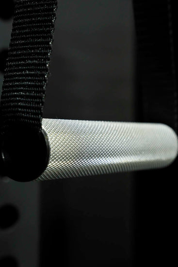 Each handle features a reinforced nylon strap and heavy-gauge welded attachment point designed to handle repeated heavy loading. Zero play. Clean force transfer from stack to hand.